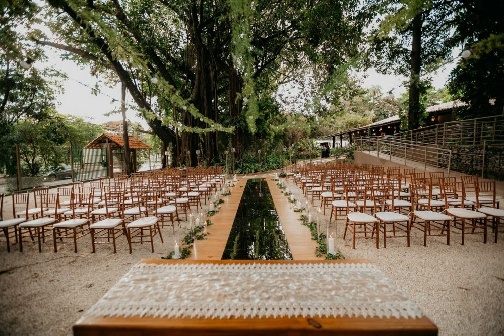 Os noivos convidam para recepção no mesmo local após a cerimônia